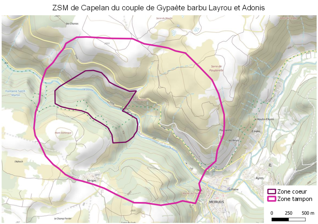 Des Zones de Sensibilité Majeurs (ZSM) sont définies autour des aires de nidification ou des sites de réintroduction des Gypaètes barbus, et autres espèces de rapaces. Ces périmètres visent à garantir la quiétude sur les sites, nécessaire au bon déroulement de la reproduction ou des lâchers. Pour découvrir ce qu’est une ZSM et prendre connaissance des ZSM Gypaète barbu dans les Grands Causses, qui font l’objet d’une diffusion, une page spécifique a été créé sur le site internet du Life Gyp’Act : Sites à forte sensibilité.